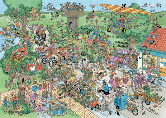 Jan van haasteren puzzels zijn puzzels met veel kleur en details. Jan van haasteren tekent al decennia lang humoristische platen die je steeds weer verrassen en laten lachen. De echte fans kennen de specifieke kenmerken van jan van haasteren en zoeken in elke puzzel direct naar de haaienvin, sinterklaas, de handjes, het kunstgebit en jan’s zelfportret.