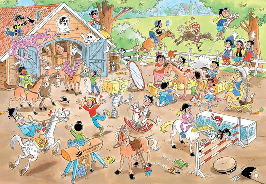 Jan van Haasteren Junior laat kinderen vanaf 5 jaar kennismaken met de absurde wereld van deze beroemde puzzels. Ze zetten hun eerste stappen in de humoristische illustraties van Jan van Haasteren en maken vorderingen met verschillende aantallen en moeilijkheidsgraden.