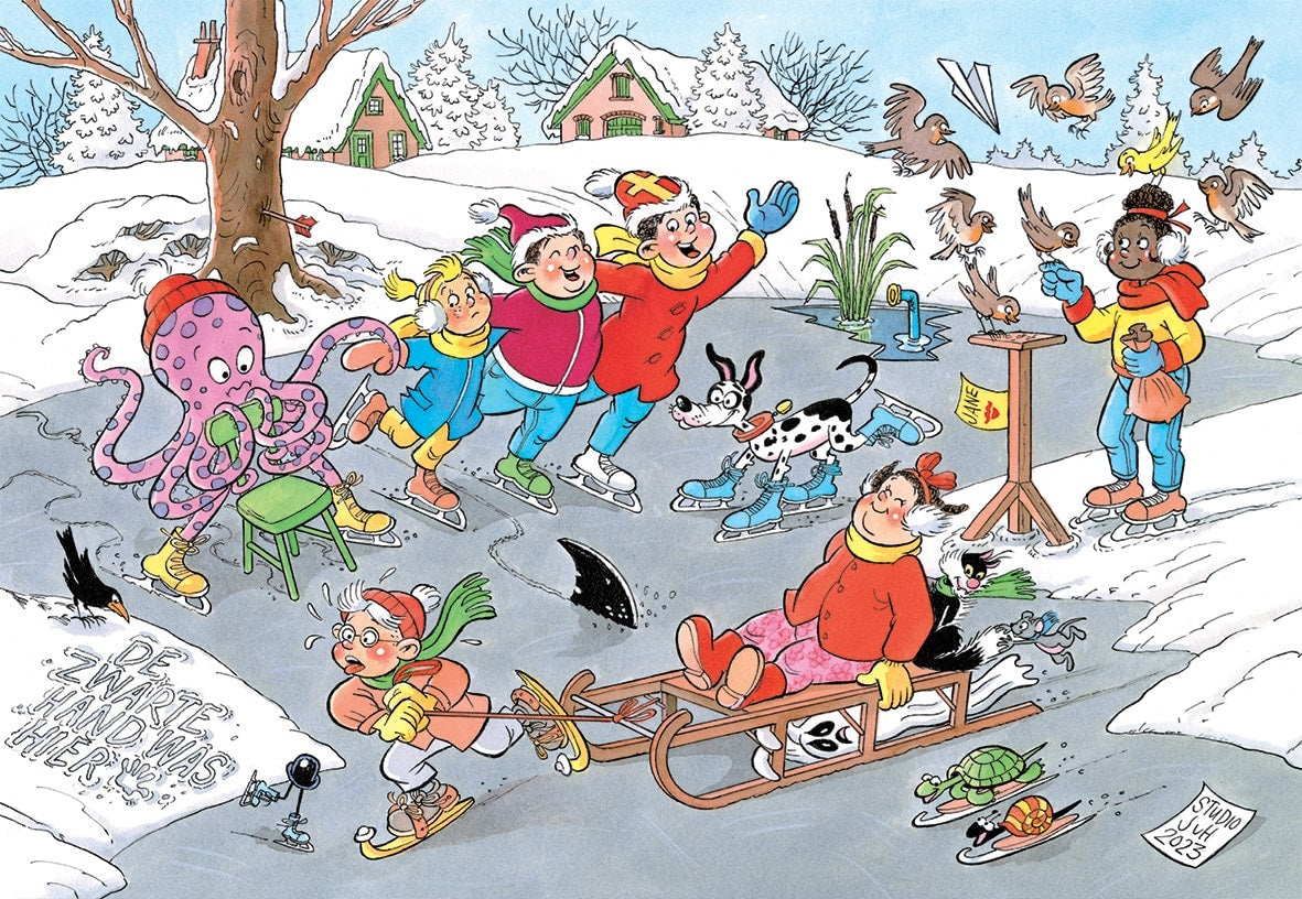 Wat zijn de jan van haasteren vriendjes blij dat ze kunnen schaatsen op natuurijs! Een geweldige ervaring en het lijkt iedereen goed te vergaan. Rebecca zorgt dat de vogeltjes niets tekort komen.