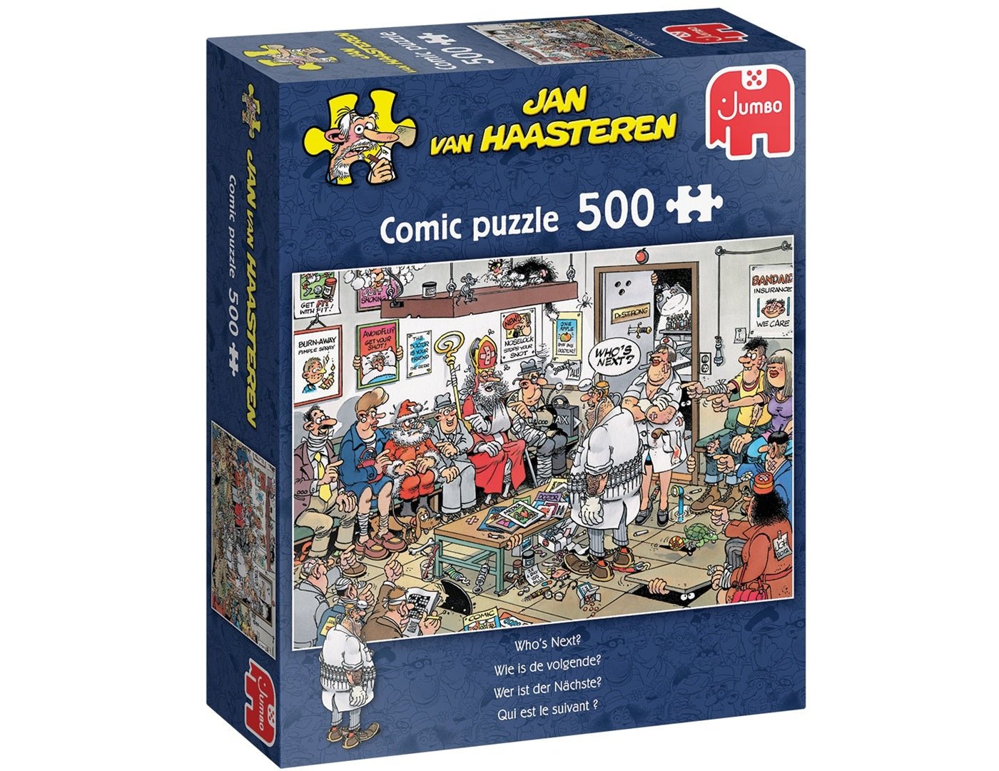 Drukte alom in de wachtkamer van de dokter. Toch lijkt niemand van de Jan van Haasteren familie haast te hebben om aan de beurt te willen zijn. Het lijkt erop dat de Kerstman als eerste mag