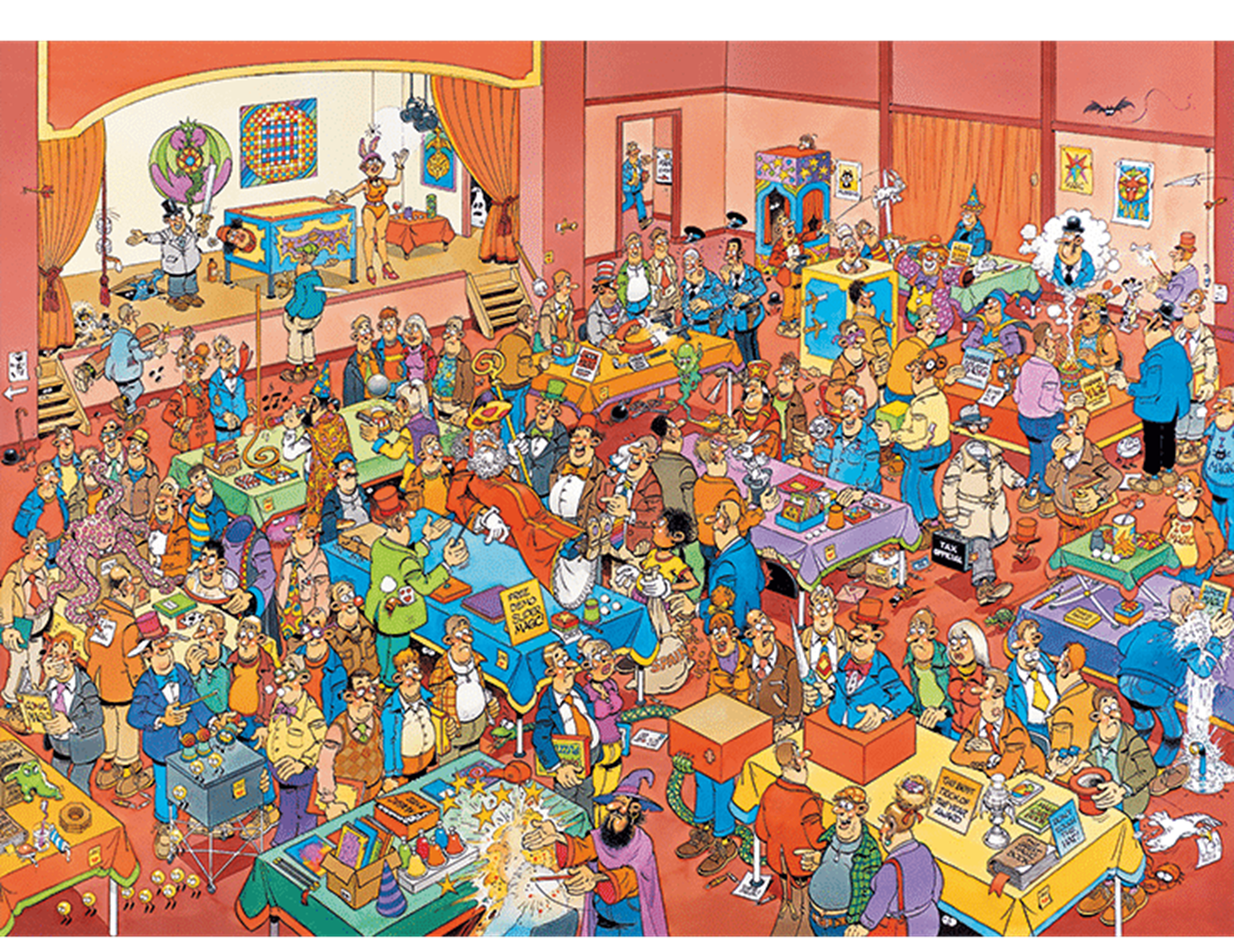De Jan van Haasteren familie bezoekt een goochelbeurs. Schoonvader kan niet wachten om schoonmoeder door de midden te zagen. En de boef heeft een slimme manier bedacht om de politieagenten te slim af te zijn.