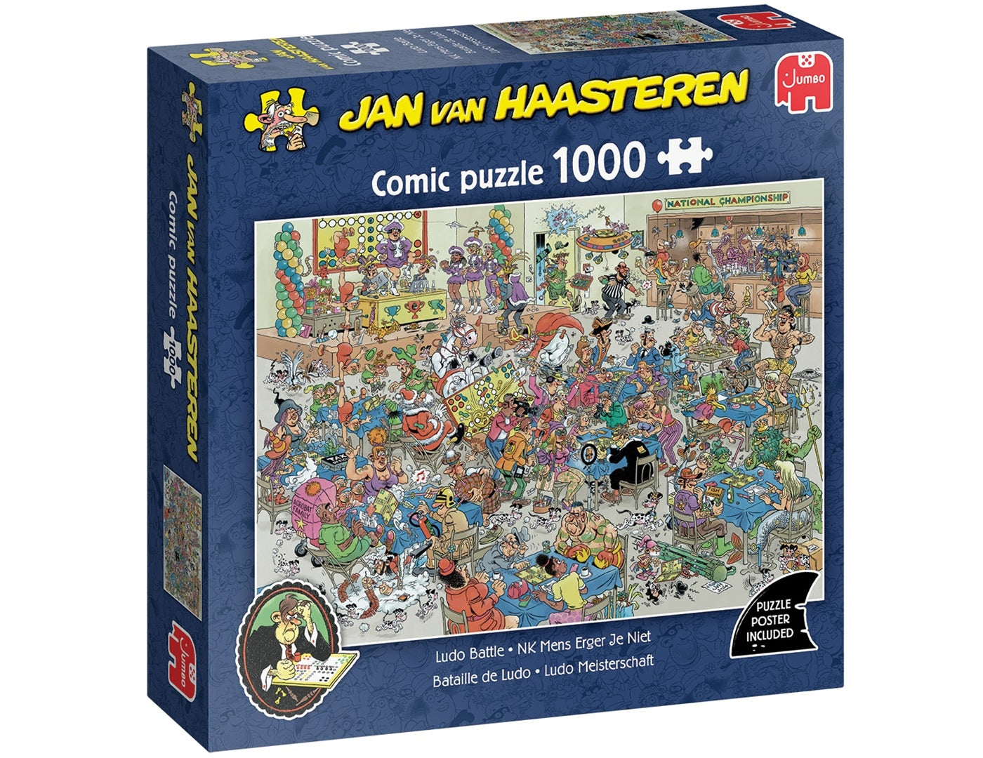 De Jan van Haasteren-familie loslaten op het Nederlands kampioenschap mens-erger-je-niet is een recept voor chaos! Spelborden, pionnen en dobbelstenen vliegen je om de oren, en de ergernis loopt hoog op. Het bekende Mens-erger-je-niet-mannetje blijkt ineens een ware heilige, zeker vergeleken met Sinterklaas!