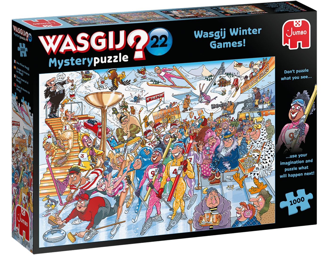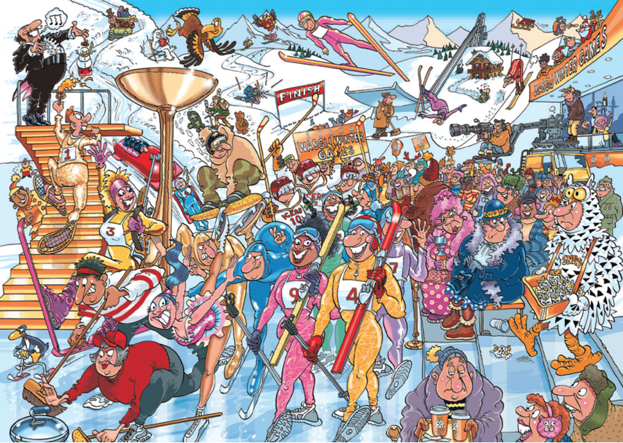 Tijdens de openingsceremonie van de Wasgij Winterspelen zijn de ogen van de wereld gericht op de trotse sporters die voorbijtrekken en naar het publiek zwaaien. Zal deze historische gebeurtenis probleemloos verlopen, of begeven de atleten zich op glad ijs? Gebruik je verbeelding en de aanwijzingen op de doos om uit te puzzelen wat er nu gaat gebeuren.